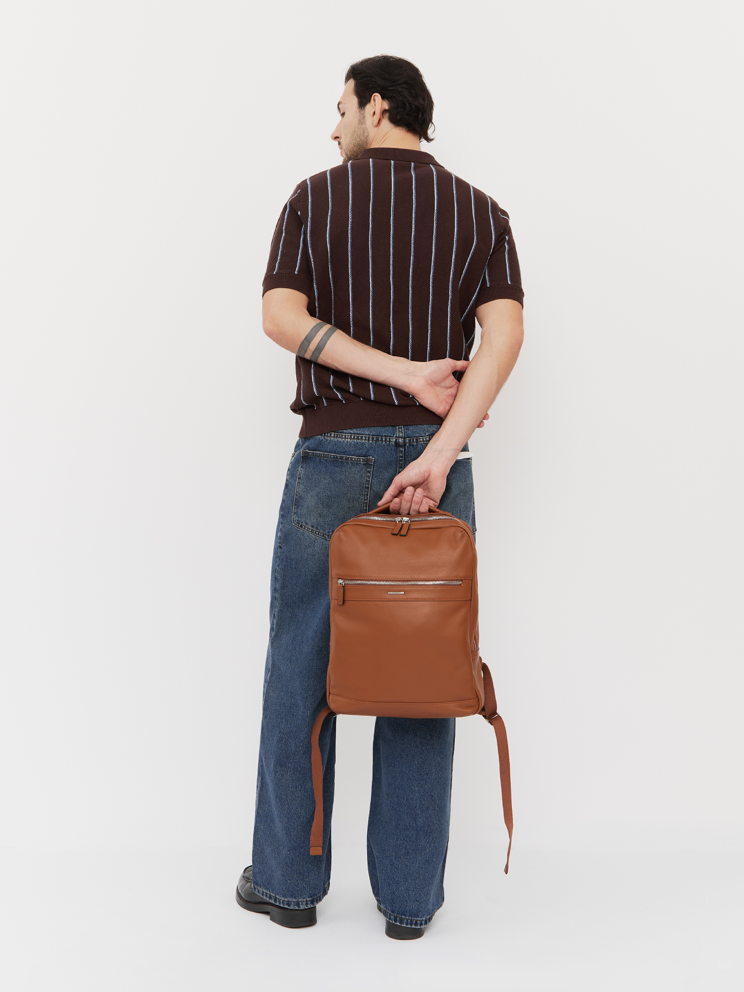Основное отделение закрывается на полукруглую молнию с 2 бегунками. Внутри есть 3 боковых кармана: 2 открытых и на молнии, а также 2 секции с мягкими стенками для гаджетов или документов. На лицевой стороне есть карман на молнии. На спинке предусмотрен вертикальный карман на молнии. Спинка и регулируемые лямки (ширина - 5,5 см) оснащены системой циркуляции воздуха AirFlow и обеспечивают комфортное использование изделия, снижая нагрузку на спину. Также на спинке есть широкий рукав для крепления рюкзака на ручку чемодана. Верхняя ручка позволяет носить аксессуар в руке. Цвет фурнитуры - серебро.